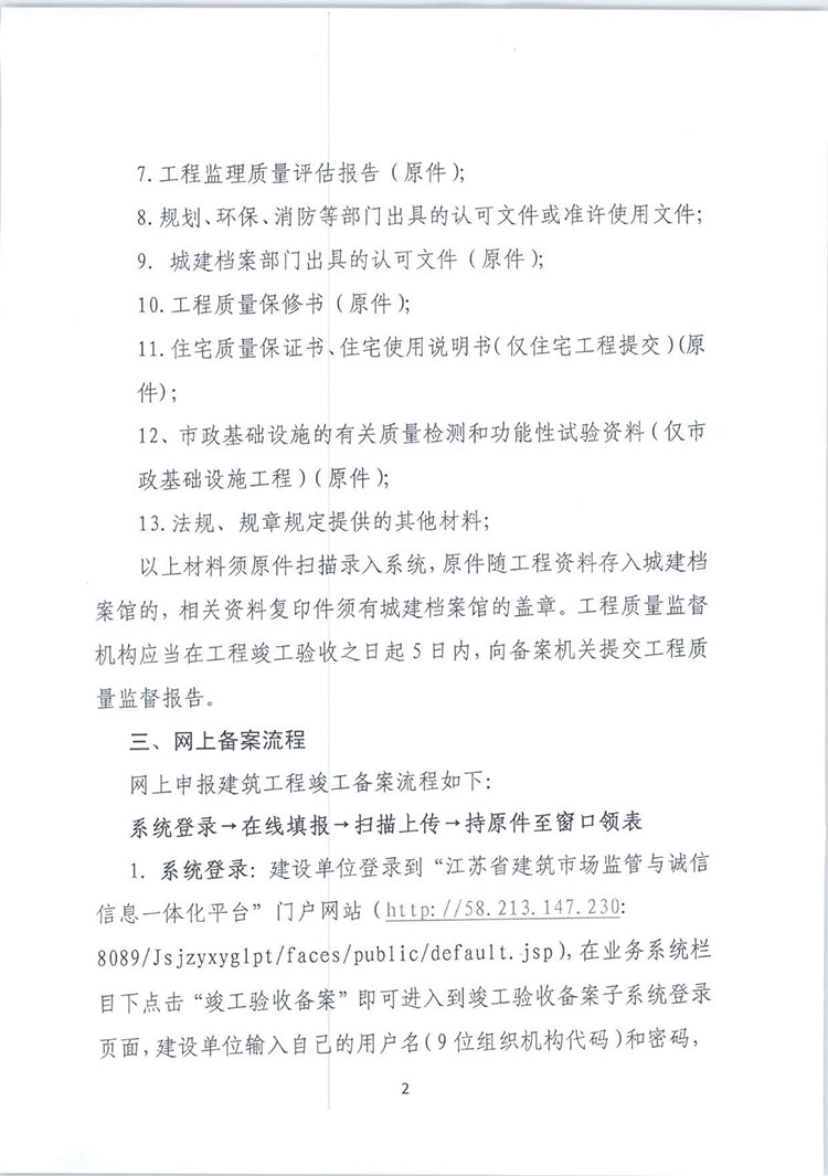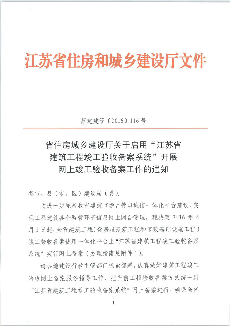 省住房城鄉(xiāng)建設(shè)廳關(guān)于啟用“江蘇省建筑工程竣工驗(yàn)收備案系統(tǒng)”開展網(wǎng)上竣工驗(yàn)收備案工作的通知