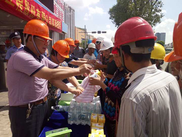 在慰問(wèn)活動(dòng)中,劉厚純書記每到一處都向堅(jiān)守崗位的一線員工表示親切慰問(wèn),與項(xiàng)目經(jīng)理進(jìn)行交談,詳細(xì)了解項(xiàng)目施工情況和工人的生活情況。他要求各項(xiàng)目部要切實(shí)關(guān)心一線作業(yè)人員的安全和健康,采取有效措施,合理調(diào)整工作時(shí)間,確保將防暑降溫工作落到實(shí)處,確保員工身體健康,確保生產(chǎn)安全。