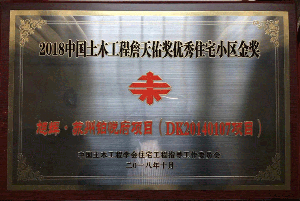 11月1日,2018年中國土木工程詹天佑獎優(yōu)秀住宅小區(qū)金獎頒獎儀式在北京舉行,由達欣集團第一工程公司承建的蘇州旭輝-鉑悅府項目獲得詹天佑獎優(yōu)秀住宅小區(qū)金獎。