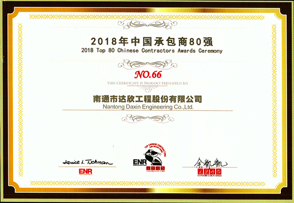 11月8日上午,2018年ENR/建筑時(shí)報(bào)中國(guó)承包商80強(qiáng)榜單在中國(guó)江西省南昌市隆重舉行頒獎(jiǎng)典禮,來(lái)自建設(shè)主管部門、中國(guó)建筑業(yè)協(xié)會(huì)、中國(guó)勘察設(shè)計(jì)協(xié)會(huì)、中國(guó)對(duì)外承包工程商會(huì)等行業(yè)協(xié)會(huì),美國(guó)ENR雜志高層以及國(guó)內(nèi)140家入圍“中國(guó)承包商80強(qiáng)和工程設(shè)計(jì)企業(yè)60強(qiáng)”榜單的企業(yè)高管匯聚一堂,共同見(jiàn)證新一屆中國(guó)建筑業(yè)最強(qiáng)陣容的誕生。南通市達(dá)欣工程股份有限公司首次成功入圍中國(guó)承包商80強(qiáng)第66名、最具效益承包商第10名。
