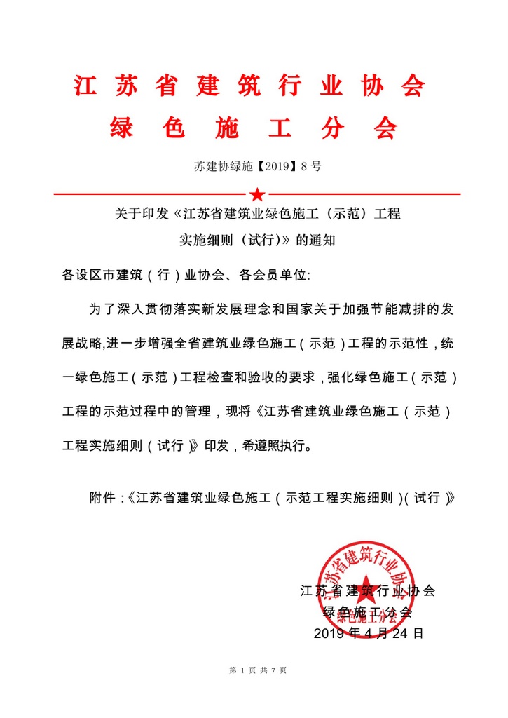 關(guān)于印發(fā)《江蘇省建筑業(yè)綠色施工(示范)工程實施細則(試行)》的通知