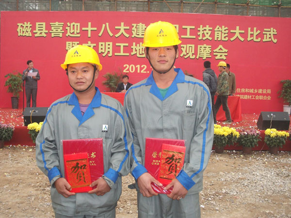 本次職工技能比武共有12家單位參加,通過(guò)激烈角觸,第四工程公司寶盛世紀(jì)B區(qū)二期項(xiàng)目部選送的鋼筋組一舉奪得小組第一名、焊接組奪得小組第二名,項(xiàng)目部同時(shí)被授予2012年磁縣建筑職工技能比武特別貢獻(xiàn)單位。