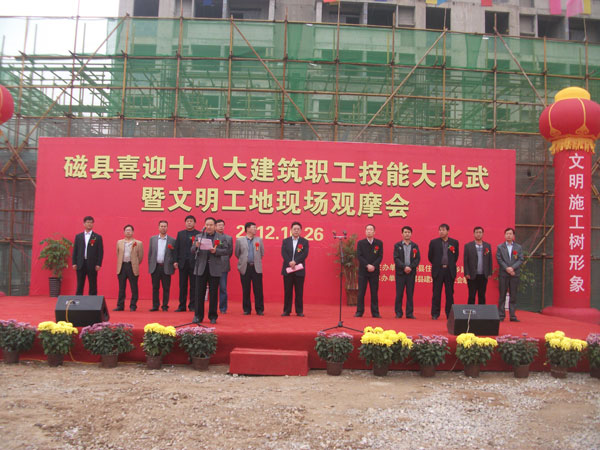 “磁縣喜迎十八大建筑職工技能比武大會(huì)暨文明工地現(xiàn)場(chǎng)觀摩會(huì)”在第四工程公司寶盛世紀(jì)項(xiàng)目舉行