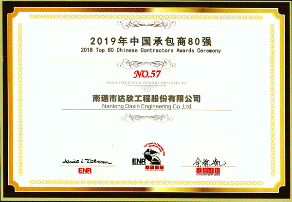 達(dá)欣集團(tuán)入選2019ENR/《建筑時(shí)報(bào)》中國(guó)承包商80強(qiáng)
