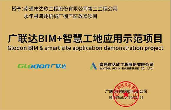 調(diào)研期間與項目BIM團(tuán)隊人員進(jìn)行了互動交流,經(jīng)過一系列的驗收標(biāo)準(zhǔn)考核后,最終授予該項目“廣聯(lián)達(dá)BIM+智慧工地應(yīng)用示范項目”稱號。