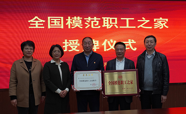 4月15日下午,南通市總工會二級調(diào)研員葉新春、基層工作部部長陸衛(wèi)彬、基層工作部主任科員豆煦等領(lǐng)導(dǎo),為達(dá)欣集團獲得“全國模范職工之家”授牌。海安市總工會黨組書記、副主席柴寶清,海安市總工會副主席(兼)、建筑工程管理局副局長徐培鴻,海安市總工會組織部(基層工作部)部長曹曉玲;集團黨委書記劉厚純,副總經(jīng)理、工會主席溫鶴華等出席授牌儀式,共同見證了這一光榮的時刻。