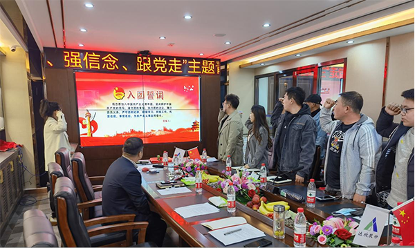 活動首先重溫了入團誓詞,觀看黨的故事100講-五四運動、達(dá)欣集團黨史發(fā)展紀(jì)錄片。隨后,優(yōu)秀青年代表進(jìn)行了慷慨激昂的“我為建黨100周年獻(xiàn)禮”發(fā)言以及青年突擊隊授旗儀式。為活躍現(xiàn)場氣氛,還進(jìn)行了擊鼓揚花唱紅歌趣味小游戲。