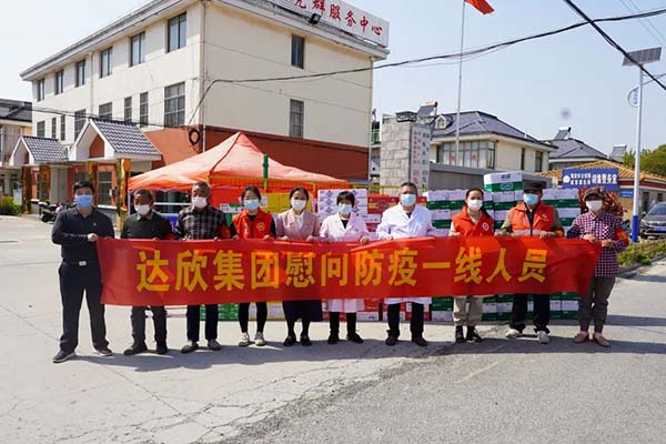 胡集街道黨工委書記孫堅(jiān)對達(dá)欣集團(tuán)的又一善舉表示感謝。他表示,在抗擊疫情的重要時(shí)刻,達(dá)欣集團(tuán)始終心系地方百姓安危和關(guān)心一線工作人員,此次慰問不僅溫暖了一線防疫工作人員的心,更凝聚了大家打贏這場疫情防控攻堅(jiān)戰(zhàn)的信心與合力。