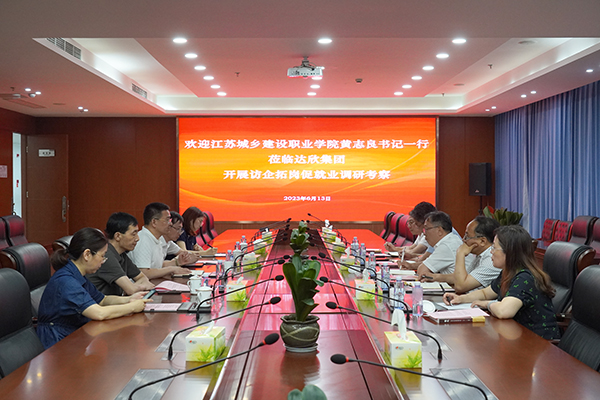王邦國總經(jīng)理對黃志良書記等校方領(lǐng)導(dǎo)的一行蒞臨調(diào)研指導(dǎo),表示熱烈的歡迎。他結(jié)合行業(yè)形勢,就達欣近幾年的發(fā)展情況以及市場開拓、未來發(fā)展等內(nèi)容作了介紹,他表示,達欣與江蘇城鄉(xiāng)建設(shè)職業(yè)學(xué)院結(jié)緣多年,雙方在理念、共識上有高度的契合點,希望雙方在接下來的合作中,不斷尋找產(chǎn)教融合的新方向和新途徑,共同發(fā)展、合作共贏。