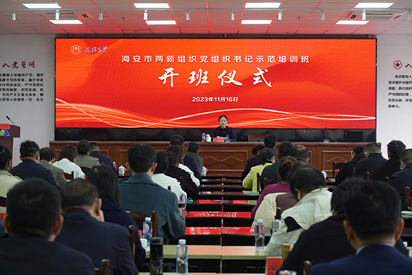 11月16日,全市兩新組織黨組織書記示范培訓(xùn)班開班儀式在達欣集團舉行,海安市委組織部常務(wù)副部長、“兩新”工委書記、黨建辦主任吳蘭,各區(qū)鎮(zhèn)街道組織委員、培訓(xùn)班全體學(xué)員、高新區(qū)兩新組織黨組織書記代表等100多人出席活動。集團在海領(lǐng)導(dǎo)馬和軍、杭小建、劉厚純參加活動。