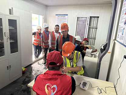 5月30日,第一志愿服務分隊聯(lián)合上海中醫(yī)藥大學醫(yī)學專業(yè)的實習生,到蘇州平江項目為一線職工進行健康防范知識、急救常識普及,工友們一一向醫(yī)護人員詢問日常工作中遇到的健康問題,了解了高血壓、高血脂和糖尿病等慢性病的預防和治療情況,讓工友學到了很多日常預防疾病的小知識。此外,志愿者們還用智能體檢機器人逐一為工友進行了血壓、血糖、體脂等一系列常規(guī)的健康檢查。