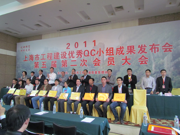 4月17日上海市工程建設(shè)質(zhì)量管理協(xié)會召開2011年建設(shè)工程優(yōu)秀QC小組活動成果發(fā)布會暨第五屆第二次會員大會。第一工程公司選送的 “攻克3m厚大體積砼底板裂縫”、“提高施工現(xiàn)場安全達標優(yōu)良率”、“推行‘四節(jié)一環(huán)保’有效降低工程成本”、“提高建筑幕墻工程的施工質(zhì)量”、“有效控制填充墻內(nèi)混凝土構(gòu)造柱裂縫”、“有效控制斜屋面混凝土施工質(zhì)量”、“提高YTONG砂加氣砼砌塊砌筑合格率”、“有效提高模板工程施工質(zhì)量”、“降低明珠城三期工程鋼筋損耗”等九項QC成果均參加本次活動的發(fā)布與交流。這次江蘇省在滬企業(yè)參加QC成果發(fā)布、交流共83篇,我公司就占據(jù)其中的14%,得到了駐滬辦領(lǐng)導的充分肯定。工程公司也被上海市工程建設(shè)質(zhì)量管理協(xié)會評為2011年上海市建設(shè)質(zhì)量管理小組活動優(yōu)秀企業(yè)。