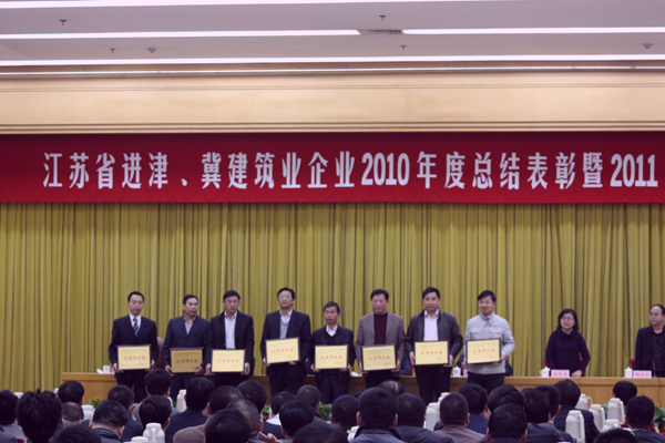 2011年3月20日,江蘇省進(jìn)津、冀建筑業(yè)企業(yè)2010年度總結(jié)表彰暨2011年工作大會(huì)在天津大禮堂隆重召開。大會(huì)由江蘇省建設(shè)廳駐天津辦事處副主任韓勁松主持,主任鄧福林作了“搶抓新機(jī)遇,謀劃新發(fā)展,不斷開創(chuàng)江蘇建筑業(yè)新局面”的工作報(bào)告,對(duì)2010年的工作進(jìn)行回顧,并提出2011年工作目標(biāo)任務(wù)。江蘇省建筑工程管理局副局長紀(jì)迅、天津市外地施工隊(duì)伍管理站站長吳海、江蘇省住房和城鄉(xiāng)建設(shè)廳監(jiān)察室主任王毅、計(jì)劃賬務(wù)處調(diào)研員徐和美等江蘇省、天津市的主管部門領(lǐng)導(dǎo)應(yīng)邀出席了會(huì)議,紀(jì)迅局長、吳海站長作了重要講話。