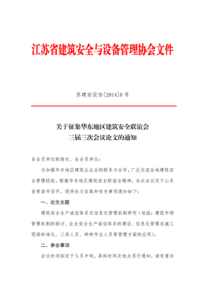 關(guān)于征集華東地區(qū)建筑安全聯(lián)誼會三屆三次會議論文的通知