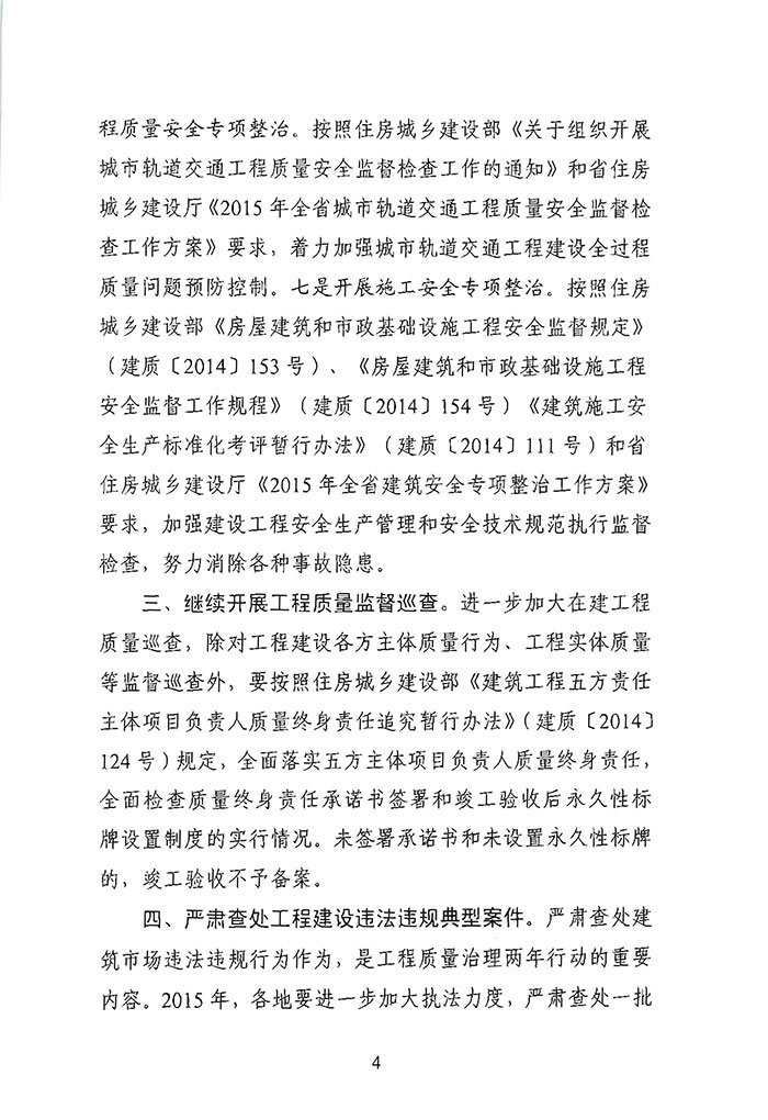 省住房城鄉(xiāng)建設(shè)廳關(guān)于印發(fā)《全省工程質(zhì)量治理兩年行動(dòng)2015年工作安排》的通知
