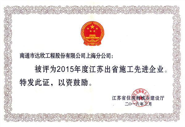 會議同時表揚了一批進滬施工企業(yè)先進企業(yè)和先進個人。第一工程公司榮獲江蘇省出省施工先進企業(yè),倪志榮同志榮獲江蘇省出省施工優(yōu)秀項目經(jīng)理稱號。